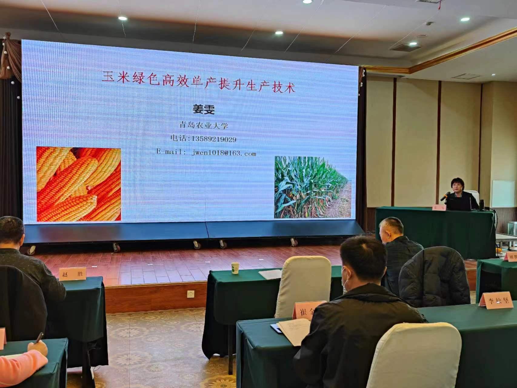 2023年3月10日,省玉米产业技术体系岗位专家姜雯教授应邀为青岛市农技推广骨干能力提升培训班作题为《玉米绿色高效单产提升生产技术》和《大豆玉米带状复合种植技术》的报告,从夏玉米品种选择、提高播种质量与群体整齐度、玉米水肥高效管理技术、玉米防灾减灾技术与机收减损技术等关键技术方面对玉米绿色高效生产技术进行深入浅出、图文并茂的讲解。深入贯彻落实农业农村部提出的“推技术、提单产”要求,加速良种良法相结合新技术的应用推广,推动玉米单产提升和高质量发展。另外对今年大豆玉米带状复合种植一些关键技术的进一步优化与参会人员也进行了深入交流,提出了指导性建议,为今年大豆玉米带状复合种植技术推广做好准备工作。