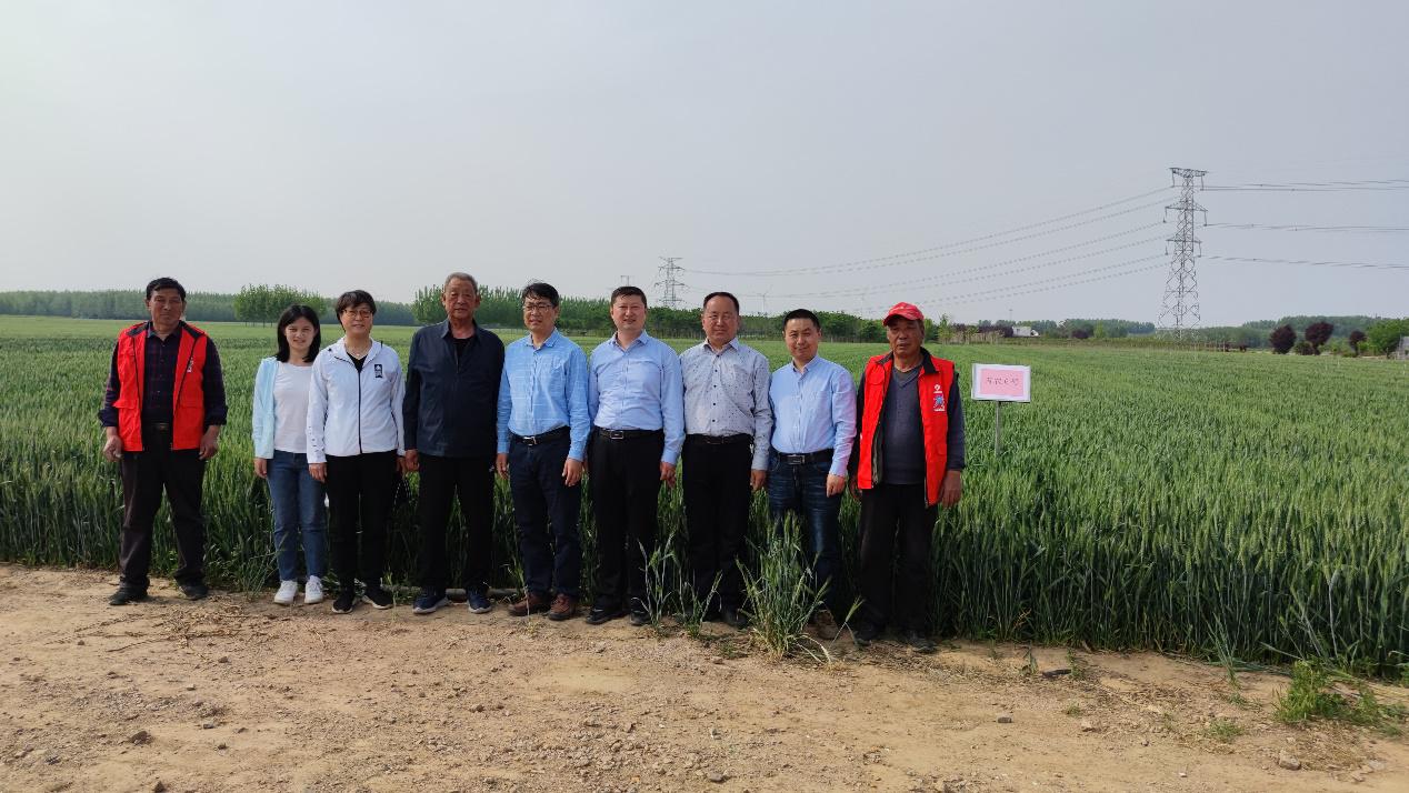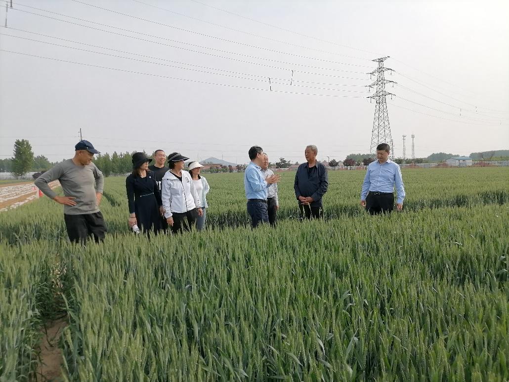 2023年5月10日,省玉米产业技术体系岗位专家姜雯教授带领团队成员会同青岛市农技中心、胶州市农业农村服务中心农技人员一行12人,到胶州市洋河镇考察指导小麦玉米“吨半粮”示范基地田间管理和大豆玉米带状复合种植生产准备工作。 在胶州市洋河镇金色庄园家庭农场,杜高古经理介绍了该农场引进的小麦新品种群体长势情况及滴灌水肥一体化追施尿素+生物多肽菌肥抗逆复壮技术效果。姜雯教授和现场农技人员结合当前群体长势,就小麦灌浆期增粒夺高产等关键技术提出了指导意见。