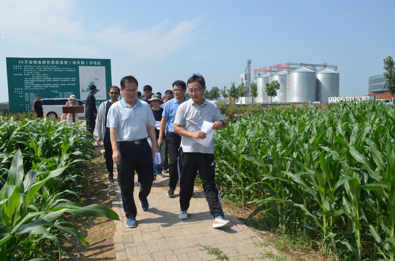 7月25日,国家玉米产业技术体系首席科学家、中国农业科学院生物技术研究所所长李新海研究员,国家玉米体系岗位科学家、山东农业大学农学院院长张吉旺教授,国家玉米体系岗位科学家、省农科院玉米所孟昭东研究员、鲁守平研究员等一行到齐河试验示范基地调研指导工作。省玉米产业技术体系副首席、栽培岗位专家、德州农科院党委书记、院长李宗新,副书记、副院长张洪星,齐河县政府党组成员、县农业农村局党组书记、局长邵朱军等陪同调研。 李新海一行参观了国家、省玉米产业技术体系德州综合试验站齐河示范县百亩方示范田、高产攻关田、玉米新品种新模式展示区、玉米大豆带状复合种植核心试验区。李宗新介绍了夏玉米苗带清茬、宽幅错位密植技术示范展示,国家玉米产业技术体系德州站站长郭良海、山东省玉米产业技术体系德州站站长郭建军具体介绍了国家站和省站联合开展玉米高产高效试验示范情况。 李新海对国家玉米体系德州综合试验站联合省玉米体系共同开展试验示范以及全国性现场会筹备工作给予充分肯定,并就田间试验展示和新品种示范推广给出了指导性意见,希望国家玉米产技术体系和省玉米体系深入结合当地玉米生产实际,推品种、推技术、推装备,助力玉米单产提升,为引领玉米产业高质量发展和保障国家粮食安全发挥积极作用。