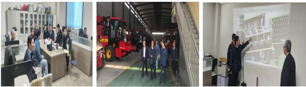 2.体系岗位专家耿端阳教授调研山东双力现代农业装备有限公司。2025年3月25日,山东省玉米产业技术体系岗位专家耿端阳教授赴山东双力现代农业装备有限公司进行调研与指导,围绕丘陵山地玉米收获机的自适应调控系统展开技术交流指导。 调研过程中,耿端阳教授深入企业生产与研发一线,实地考察了丘陵山地玉米收获机的关键作业环节。并指出,目前丘陵山地玉米收获机在实际作业中仍存在一定不足,尤其是在应对丘陵山地复杂坡度变化时,易出现割台适应性差、剥皮质量不稳定等问题,收获质量不稳定且效率低。针对上述问题,耿教授提出应加快推进收获机作业质量自适应调控系统的研发与应用,构建集成传感感知、智能判断与参数自调的控制机制,实现对地形起伏和作业状态的实时响应与精准调节,进一步提升设备在丘陵山地环境下的适应性与作业效果。此次调研指导为丘陵山地玉米收获机的技术优化提供了重要的理论支持和实践方向,为推动智能化、精准化农业机械装备的研发与应用奠定了坚实基础。山东双力现代农业装备有限公司王洪君总经理表示,将根据专家建议进一步优化设备性能,助力丘陵山区玉米高效机械化收获。