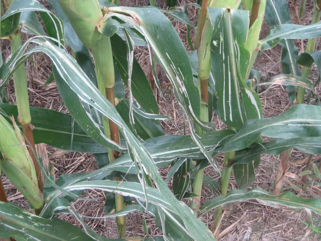 灰巴蜗牛危害玉米植株 3、发生规律 山东省一年发生1~2代,以成螺和幼螺在田埂土缝中、砖石块下、残株落叶下越夏和越冬。在玉米田,一年有两次活动危害高峰,一次是春末夏初危害玉米苗期,一般较轻;另一次在7月下旬和8月危害玉米叶片,较重,有时还爬至雌穗危害顶部籽粒。以成螺和幼螺在11月开始越冬。 灰巴蜗牛白天潜伏,傍晚或清晨取食,若遇阴雨天,白天也栖息在玉米植株上危害。卵成堆产在玉米根茎部的湿土中、河沟边、垄脊处。初孵幼螺群集取食,长大后分散危害,喜栖息在植株茂密的低洼潮湿处。温暖多雨天气、水浇条件好的潮湿地块或靠近河沟处受害重,高温干燥对其发生不利。近年来,在山东省部分玉米产区危害较重。 4、防治技术 (1)农业防治 在晴天夜晚,清晨或阴雨天人工捕捉,集中杀灭。清洁田园、铲除田中双子叶杂草,及时中耕,排干积水,破坏蜗牛栖息和产卵场所。秋季翻耕,使部分成螺和幼螺暴露于地面冻死或被天敌啄食,卵被晒裂。 (2)饵料诱杀 用双子叶杂草或白菜、甘蓝等菜叶做诱饵,每隔一定距离放一堆,引诱蜗牛潜伏堆下,清晨集中捕捉杀灭。 (3)药剂防治 每667m2用6%四聚乙醛颗粒剂400~550g、8%四聚乙醛颗粒剂480~660g,按1∶20~32的比例混沙土10~15kg,于傍晚均匀撒在受害田块玉米植株茎基部的行间和田边,或潮湿的沟边,蜗牛接触药剂后死亡。防治适期宜在成体蜗牛产卵前最佳,田间有小蜗牛时再防治一次,效果更好。 |